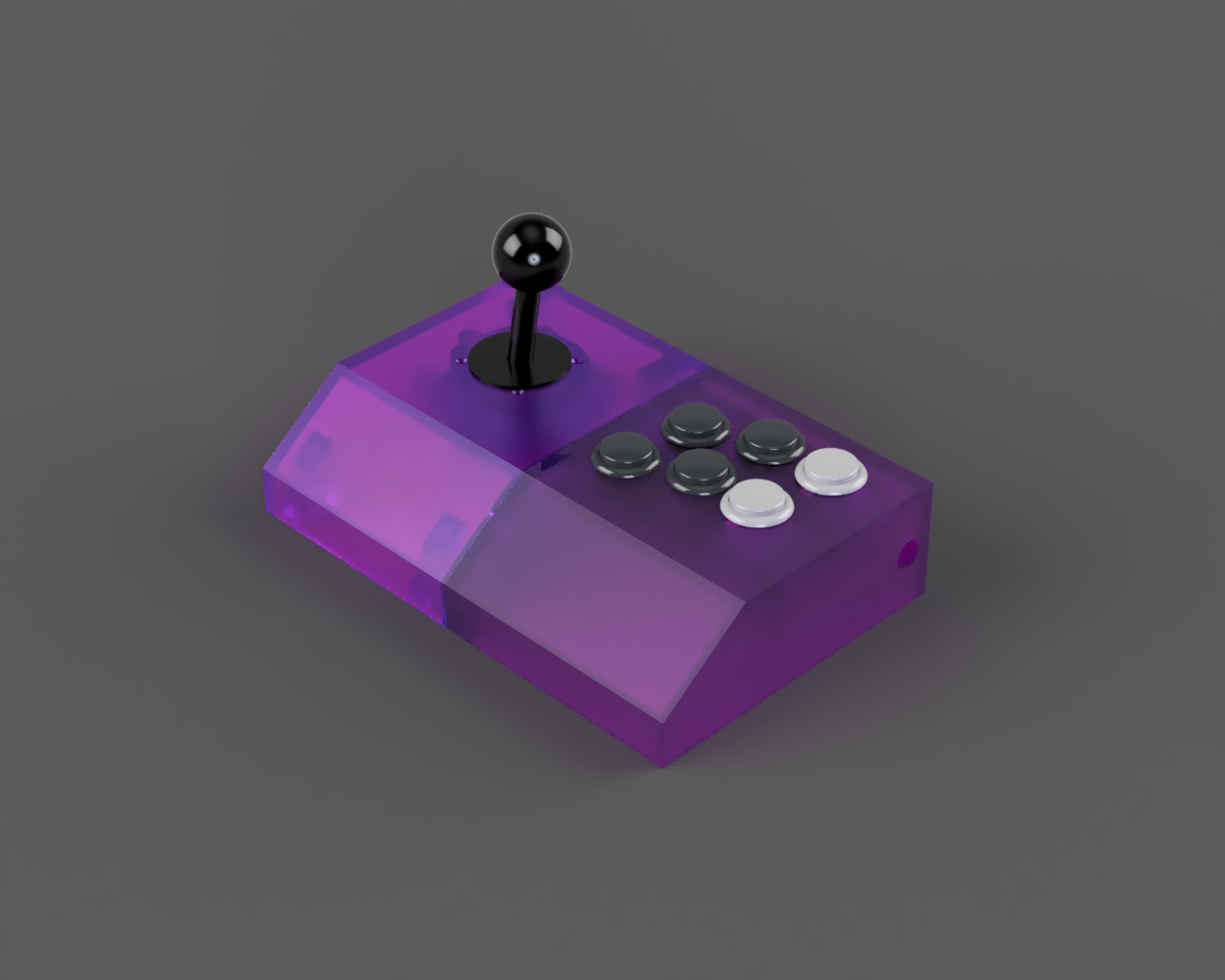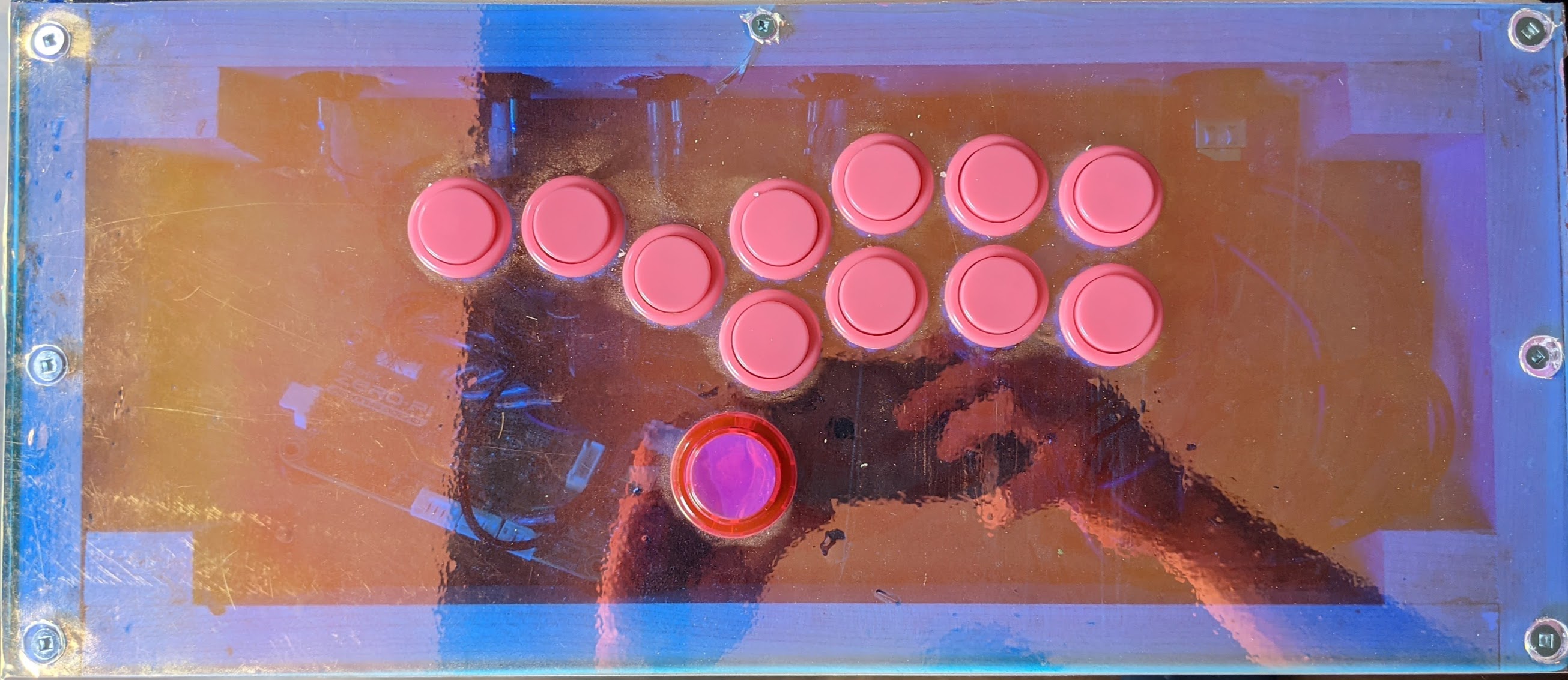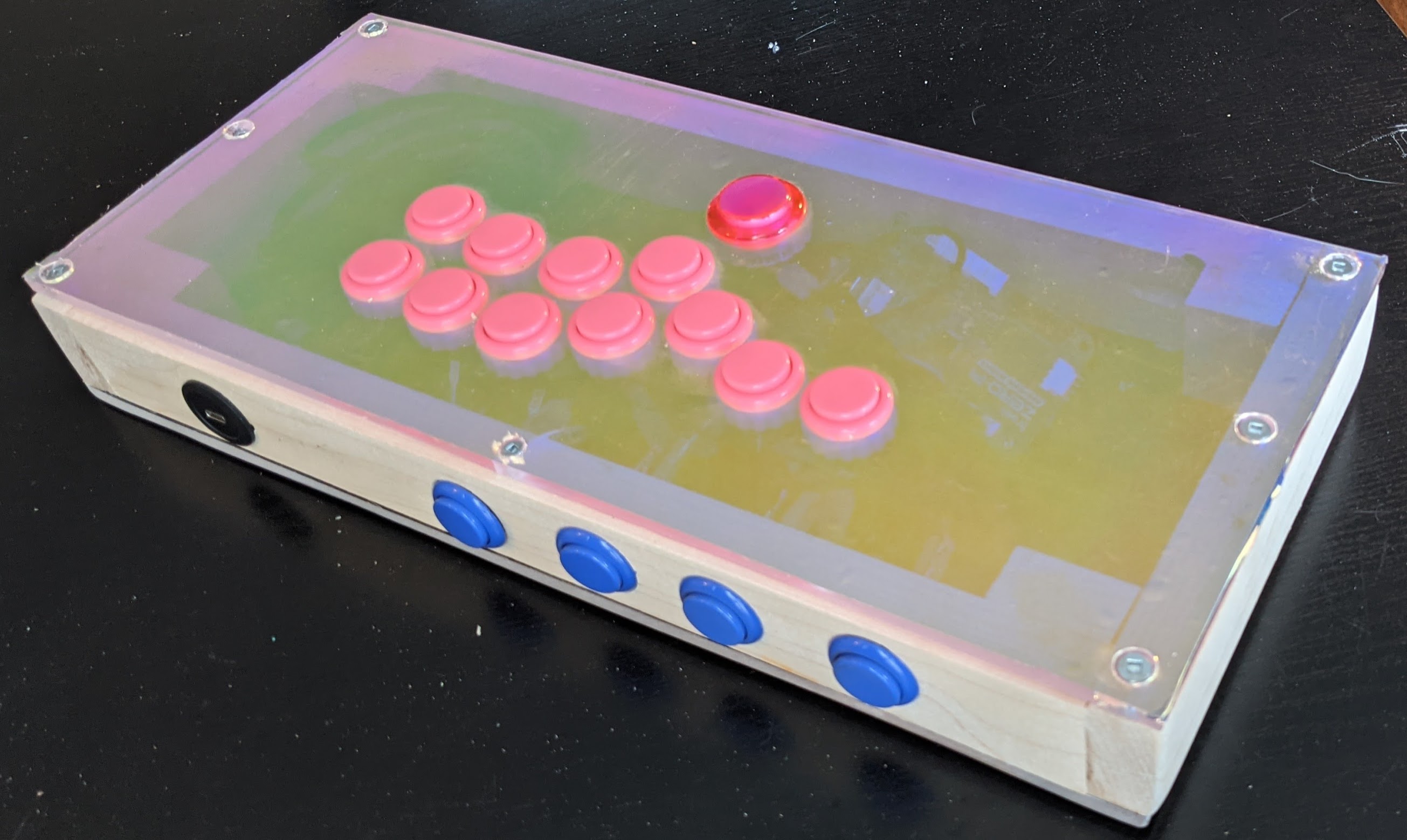 Irredescent top, acrylic and maple hitbox style controller, with original hitbox dimensions