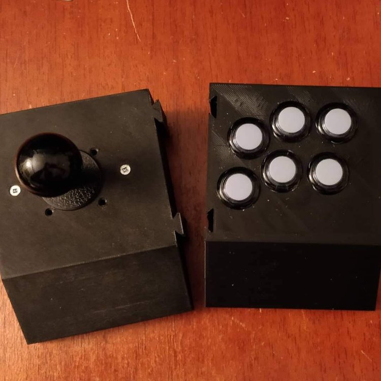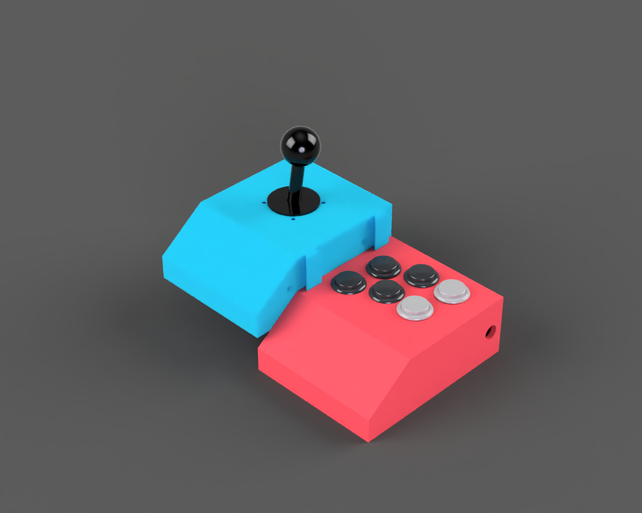 3D Printed Portable arcade stick for Nintendo Switch Pad hacked Joycons connected to sanwa parts, all standard sized, fit into a compact frame, with a Phreakmods The Link shaft for better portability.Made to come apart without any wires or connectors in between the 2 sections.