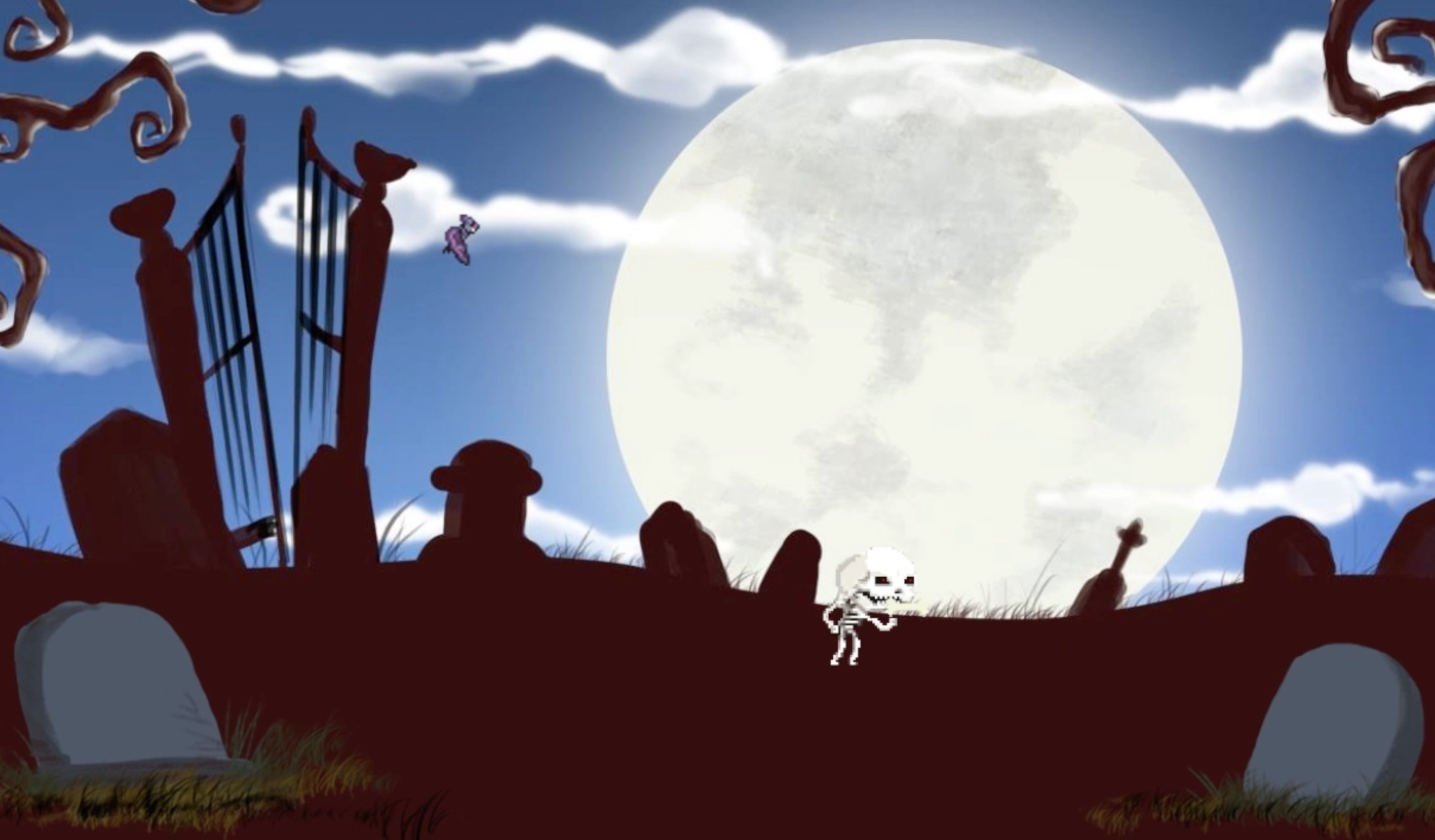 You play as a skeleton who's endless slumber has been interrupted by an evil group of grave robbers, and you are set on getting your revenge.